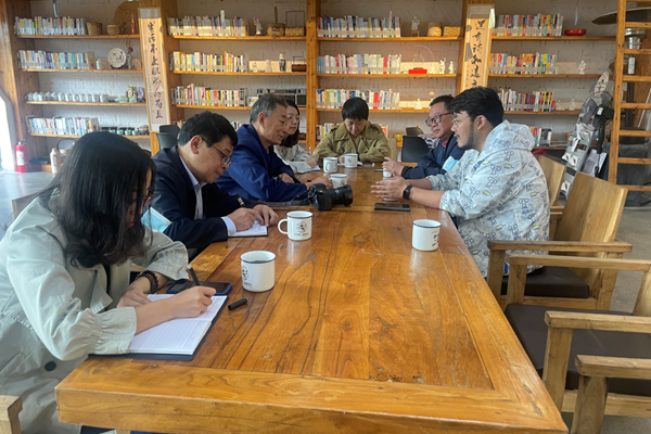 据悉,为了这次政策对话会,王景新教授通过电话访谈进一步了解湖州市长兴县煤山镇新川村的近况和三家“强村公司”的发展情况,了解了甘南藏族自治州尕秀农业有限公司及李恰如畜牧农场经营状况和效益,跟踪了浙江和江西两家农业科技有限公司的最新投资经营状况,并于10月12日带领 “两山”院相关研究人员考察了妙西谷堆乡创。在谷堆乡创负责人蒋晓锋陪同下,王景新一行考察了谷堆乡创现有的各个业态,包括乡村资源交易平台、振兴书栈、匠人工作室、乡村振兴讲坛、乡村振兴学院等,深入了解谷堆乡创的发展历程、现有的运营模式及将资本如何融入乡村的情况。