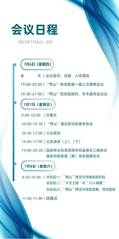 第二届“两山”理念湖州论坛暨国际研讨会拟定于2023年7月6日—8日,在“两山”理念诞生地——浙江省湖州市安吉县余村村举行。本届论坛纳入浙江省纪念“八八战略”实施20周年主题活动,论坛主题为“八八战略”·“两山”理念·中国式现代化。