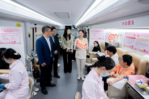 与会领导及嘉宾前往献血车看望了正在参与献血的爱心师生,送去了关怀慰问,并高度赞扬了他们的奉献精神。